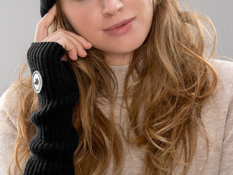 Etwas länger geschnitten, als die Lien Mittens-Pulswärmer aus Merino, sind wir Teil der neuen nachhaltigen Sport Style Cashmere-Serie. Wir sorgen auf den Unterarmen und Handflächen für wohlige Wärme und peppen den Style kräftig auf.