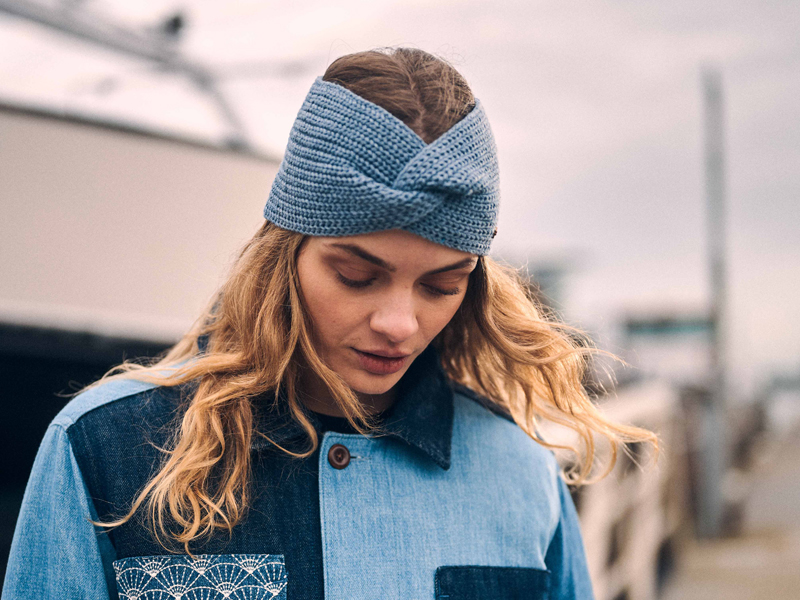 Das Verviers Stirnband ist zu 85 % aus recycelter Denim-Baumwolle und zu 15 % aus recyceltem Polyester gefertigt. Es hat vorne ein Knotendetail. Perfekt zu kombinieren mit dem Bruges Schal.