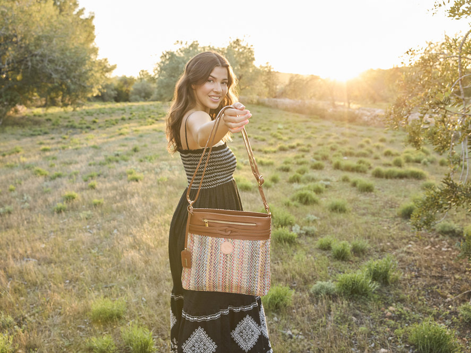 Bright Beige! Diese sandbeige Rieker Handtasche ist super schlicht, aber dafür umso zeitloser. Die Weboptik lässt die Handtasche super stylisch wirken und rundet zusammen mit dem Anhänger die Optik perfekt ab. In den zwei Hauptfächern, welche sich per Reißverschluss schließen lassen, befinden sich weitere Innentaschen zum Verstauen von Kleinigkeiten.