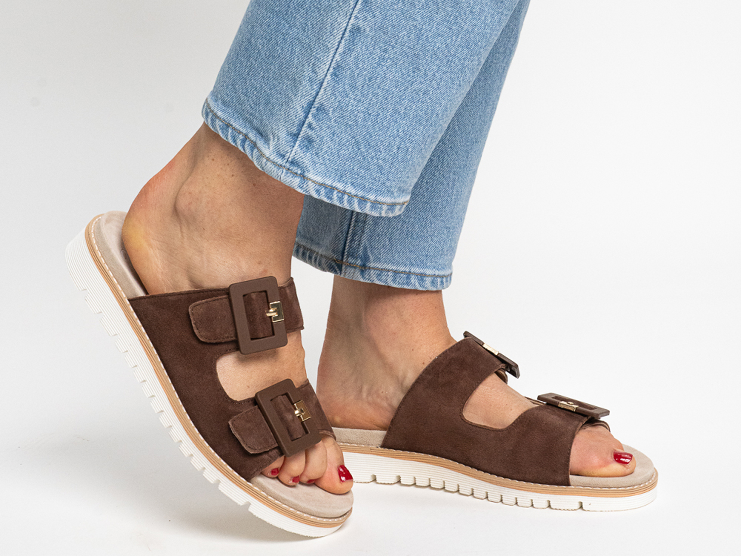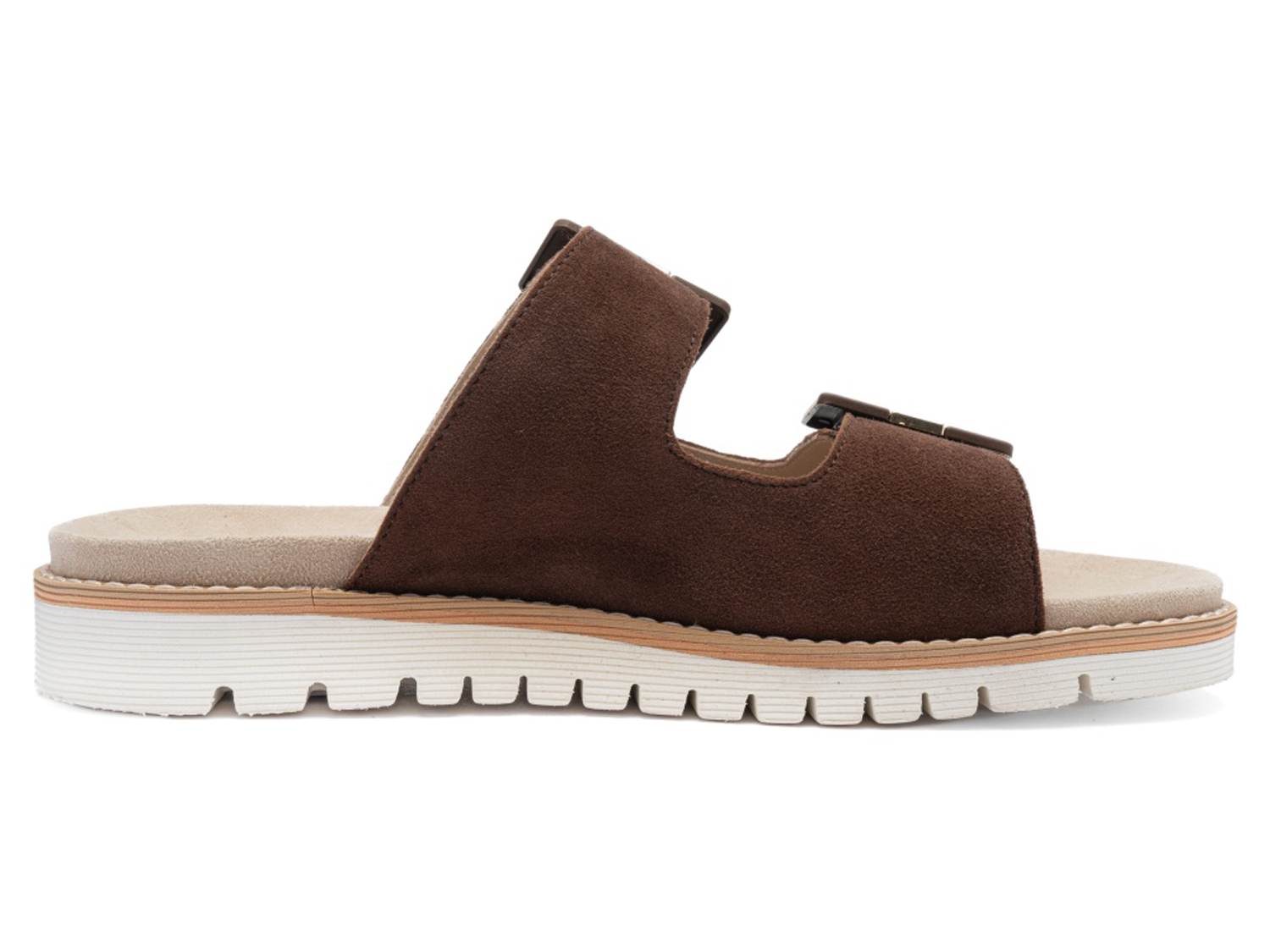 Die beiden Riemen aus weichem Leder mit hübscher Zierschnalle sind ein echter Hingucker und verleihen der Pantolette einen guten Halt. Das fest eingearbeitete und mit Leder bezogene Fußbett ist besonders bequem und weich gepolstert. Der Schuh verfügt über die HighSoft Technologie, welche das softe Obermaterial mit einer bequemen Decksohle verbindet und so für ein entspanntes Gehen sorgt. Die Riemen sind mit Leder unterfüttert, sodass sie weich auf dem Fuß aufliegen und keine Druckstellen verursachen. Schließlich sorgt die markant profilierte Sohle nicht nur für guten Halt, sie sieht auch noch besonders sportlich und stylisch aus. Mit diesen luftigen Pantoletten sind Sie für heißere Tage bestens ausgerüstet.