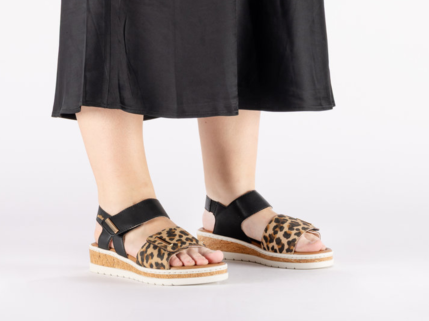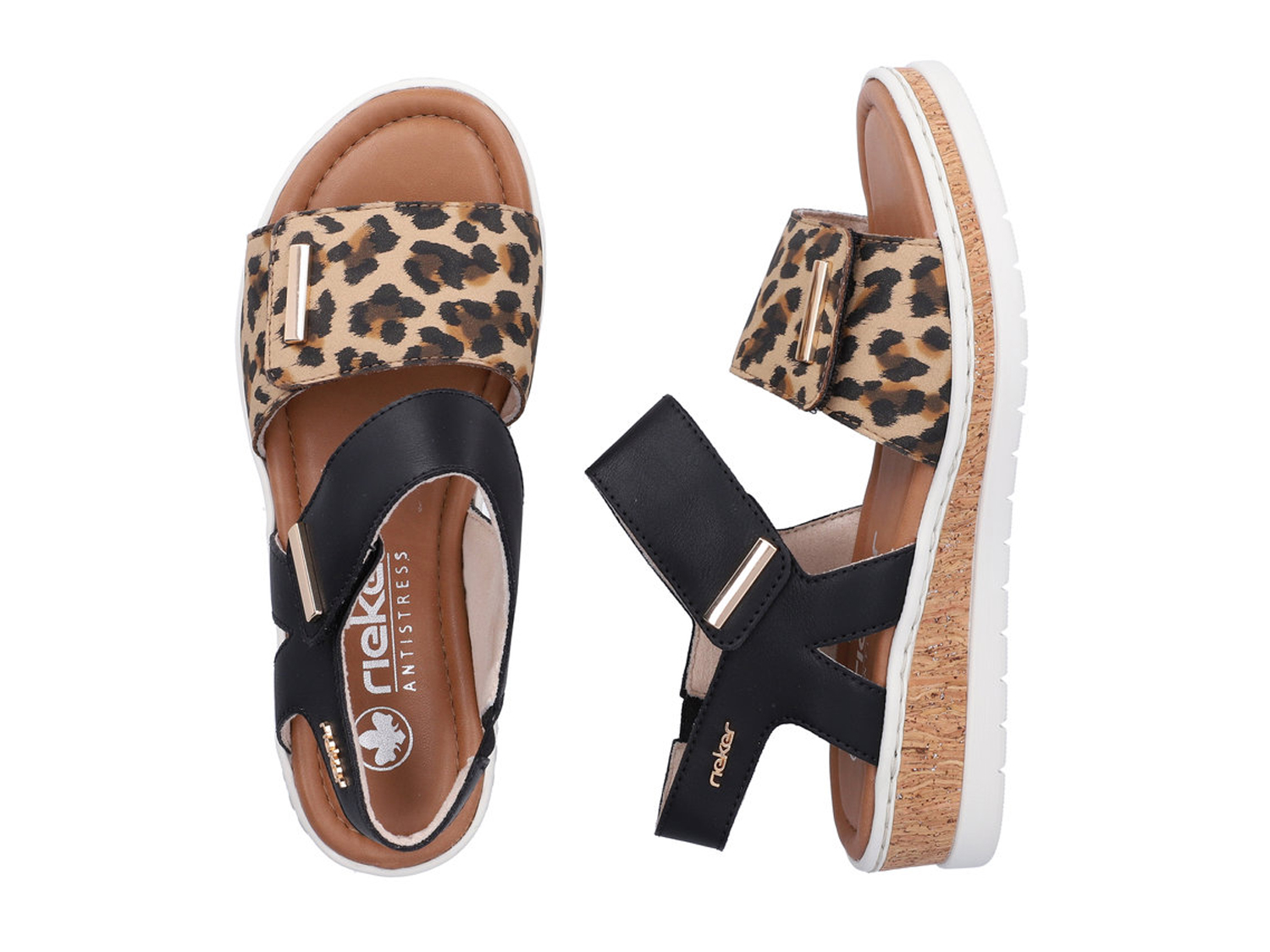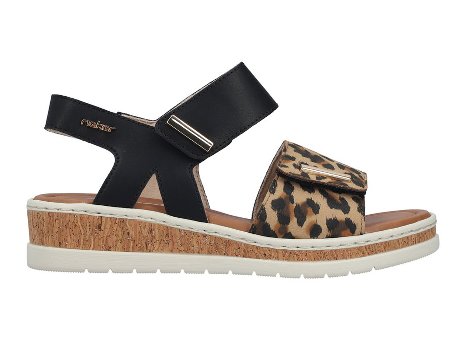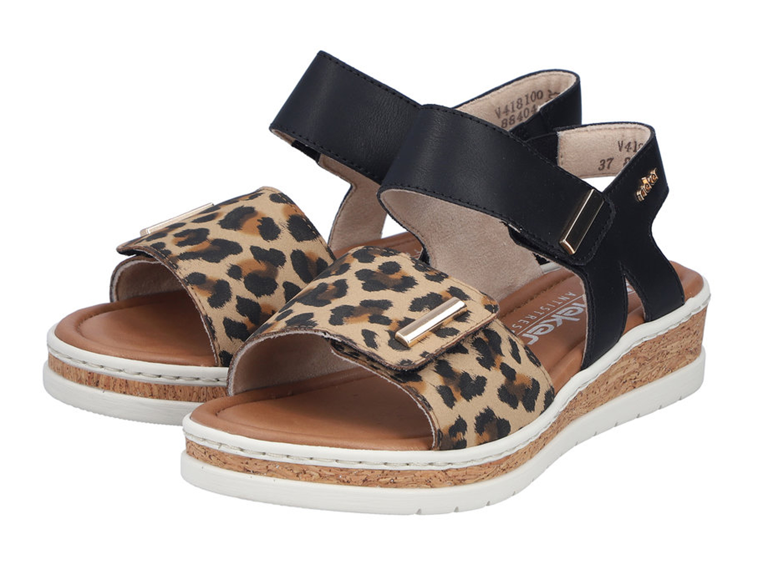 Für jeden Spaß zu haben! Mit diesen schwarzen Rieker Riemchensandalen für Damen wird die warme Saison noch schöner! Der Schuh ist in der Anflechter-Machart gefertigt, was ihn besonders robust und flexibel macht. Die Riemchensandalen sind dank einem zweifachen Klettverschluss im Nullkommanichts angezogen. Der angesagte Animal-Print ist ein hübsches Detail. Die schockabsorbierende und leichte Sohle mit Keilabsatz bietet besten Laufkomfort. Dieses Modell ist in Komfortweite geschnitten. Das nächste Freizeitabenteuer kann kommen!
