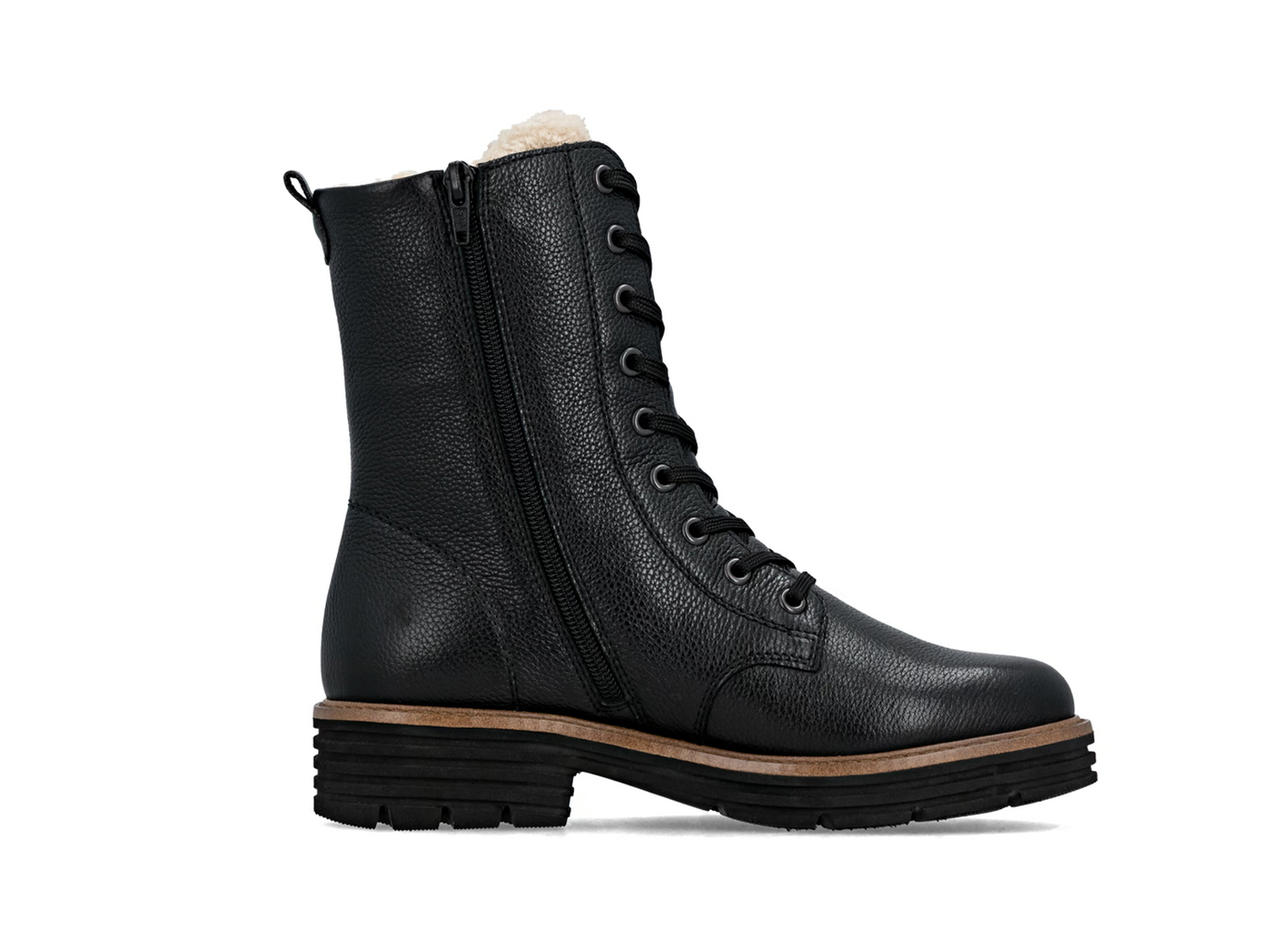 Kalte Temperaturen, warme Füße! Diese schwarzen remonte Schnürstiefel für Damen aus Glattleder wissen zu begeistern. Eine Schnürung ergänzt den Reißverschluss und sorgt für Funktionalität und Komfort. Für ein angenehmes Tragegefühl sorgt die remonte Lite n Soft Technologie mit ihrer ultra leichten Sohle und der herausnehmbaren Einlegesohle. Durch die Komfortweite ist den Zehen mehr Bewegungsfreiheit geboten. Die remonteTEX-Technologie und das sehr warme und kuschelige Schurwoll-Futter garantieren tollen Tragekomfort bei Wind und Wetter. Jackpot!