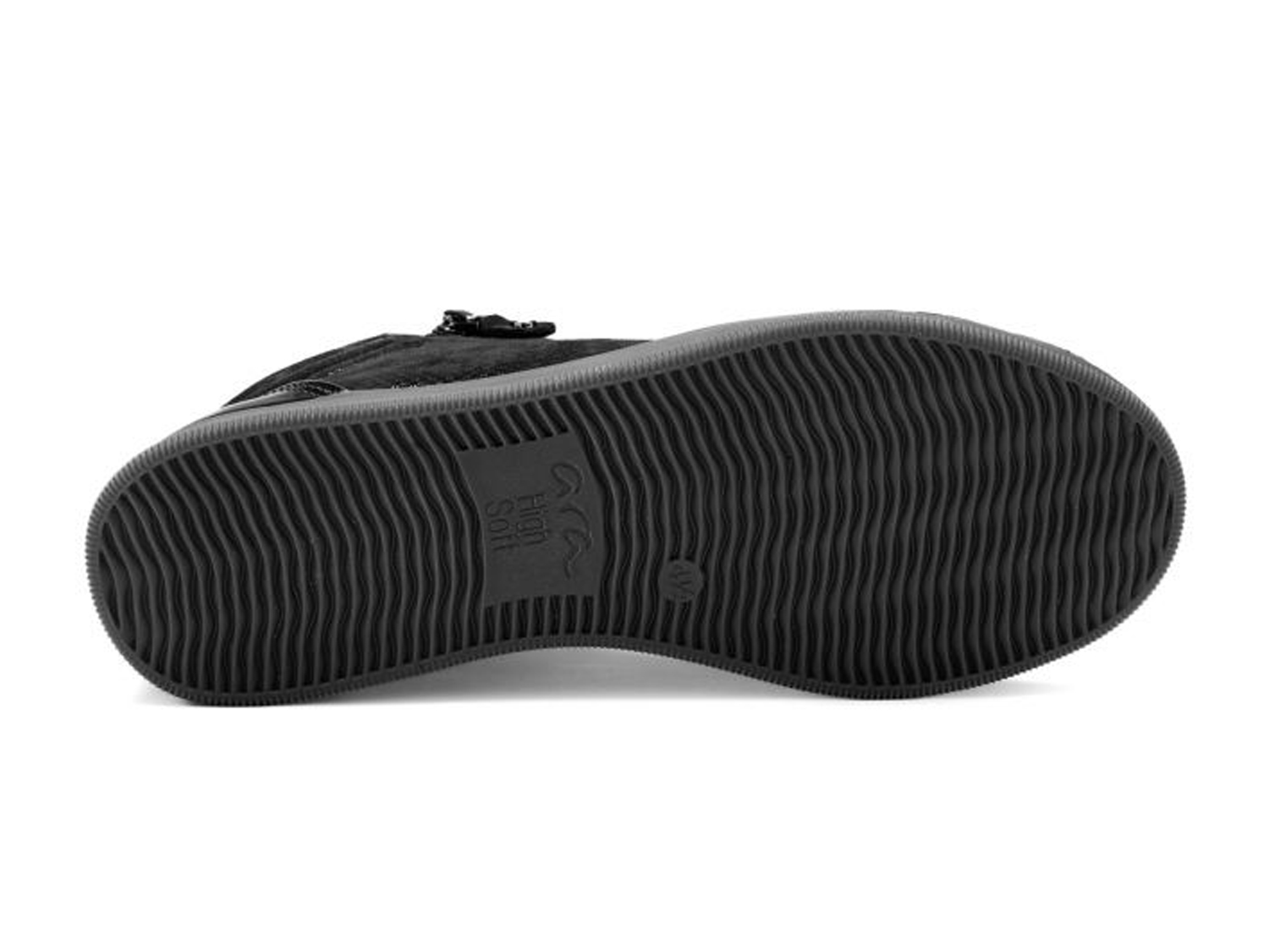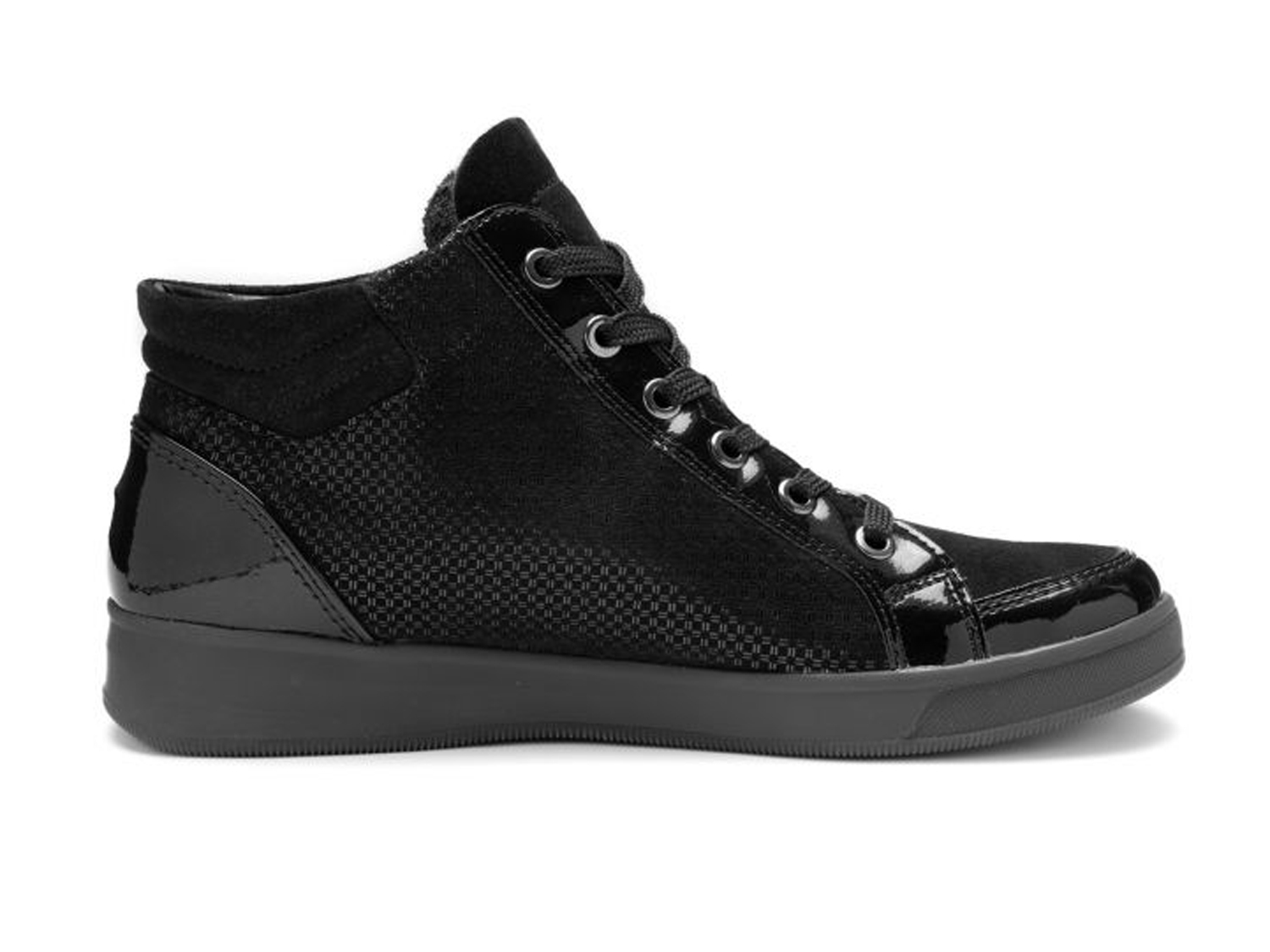 Der Hightop Sneaker von ara lädt zum Wohlfühlen ein! Weiches Leder verleiht ihm eine wunderbare Optik, die auf Anhieb überzeugt. Besonders bequem ist der Schuh dank der weichen Rundumpolsterung am Schaft, welche unangenehme Druckstellen vermeidet. Leichtes und schnelles An- und Ausziehen wird neben der Schnürung durch den seitlichen Reißverschluss unterstützt. Für wahre Wohlfühlmomente sorgt das weiche Frotteefutter auf Bambusbasis. Dieses Material ist sehr angenehm zu tragen und sorgt für ein gutes Fußklima, da es wunderbar die Feuchtigkeit absorbiert und schnell trocknet. Auch das wechselbare Fußbett ist nicht nur weich gepolstert, sondern ebenfalls mit Frottee bezogen. Schließlich ist der Sneaker auch aufgrund der innovativen HighSoft Technologie besonders bequem. Müde Füße gehören damit der Vergangenheit an. Einen sportlichen Look erhält der Schuh durch die Keilsohle. Mit dieser Stiefelette von ara sind modebewusste Frauen bestens ausgestattet.