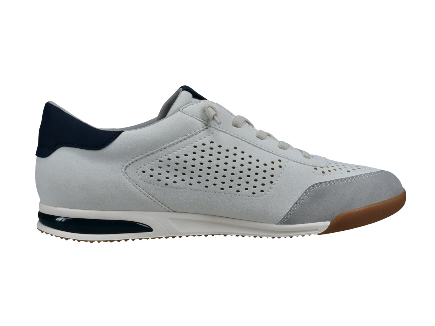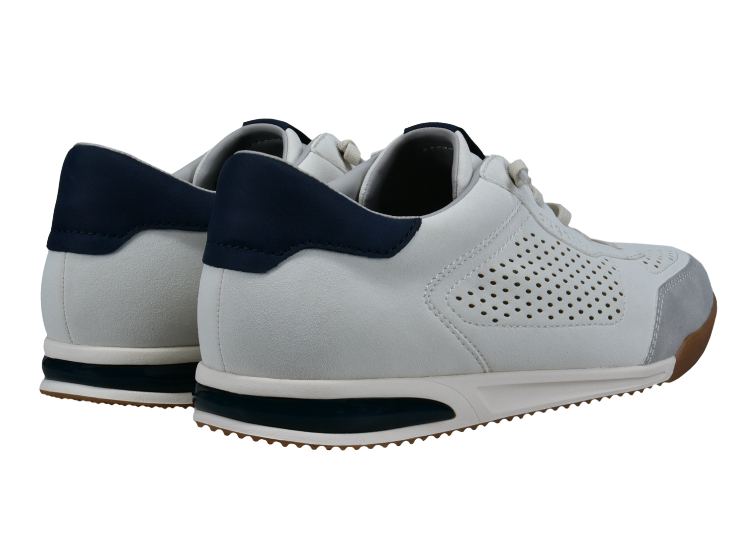 Diese weißen Sneaker passen sich mühelos deinem lässigen Stil an und haben dank der stilvollen Perforationen sowie grauer und navyfarbener Akzente eine moderne Ausstrahlung. Mit einer dünnen, gepolsterten Sohle und elastischen Schnürsenkeln bieten sie leichten Komfort und lassen sich schnell anziehen. Sie sind so designt, dass sie zu einer Vielzahl von Outfits passen und dir vielseitige Styling-Möglichkeiten bieten. Schlichte Eleganz, funktionales Design!