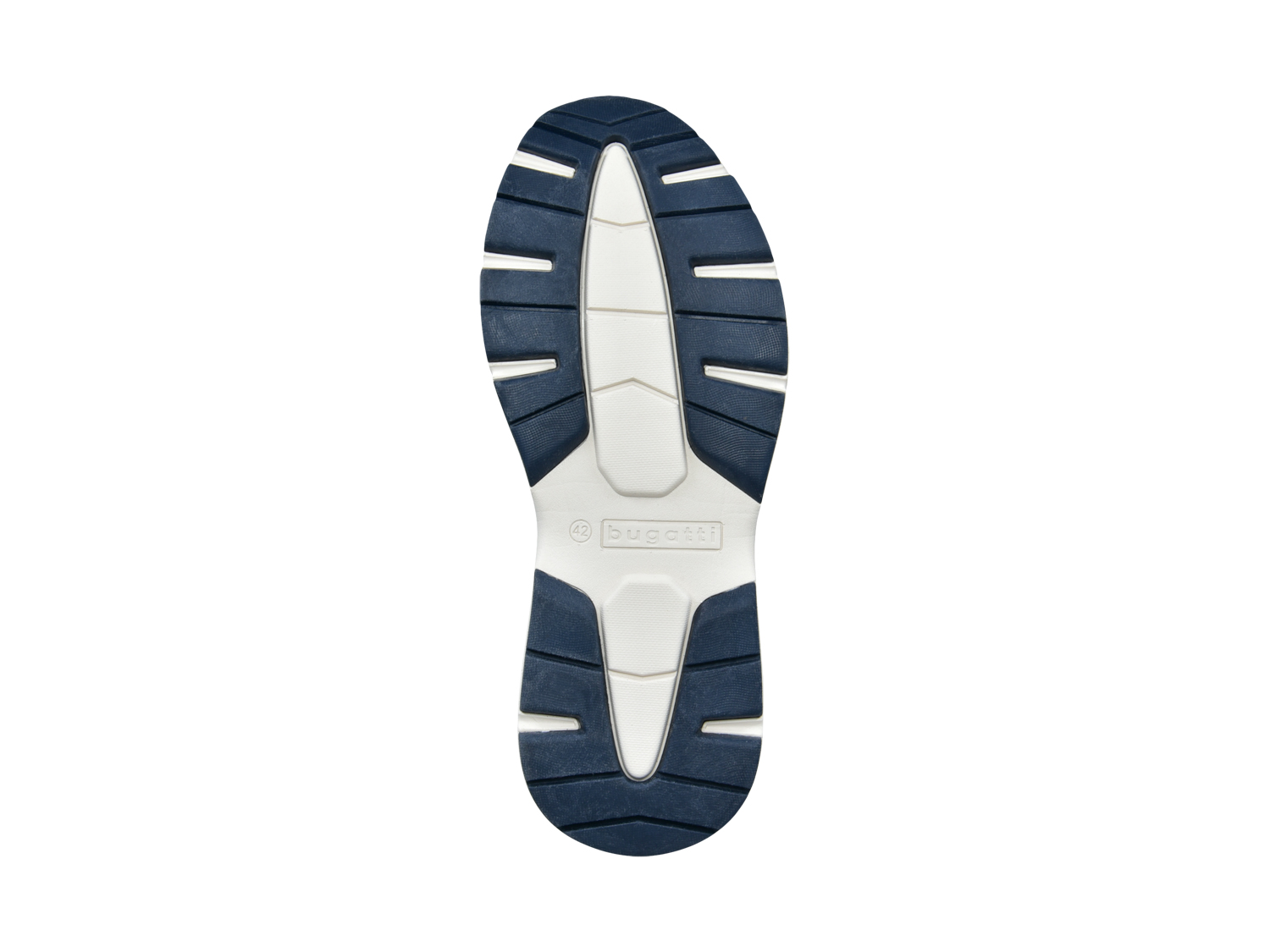 Die Herren-Sneaker haben eine Sockensilhouette und elastische Schnürsenkel, die ein einfaches An- und Ausziehen sowie eine gut sitzende und bequeme Passform garantieren. Diese dunkelblauen Sneaker von bugatti sind mit weichen Innensohlen mit Memory-Funktion ausgekleidet, die beim täglichen Tragen eine ausreichende Dämpfung garantieren. Sie bestehen aus atmungsaktivem Mesh und halten dadurch die Füße kühl und trocken.