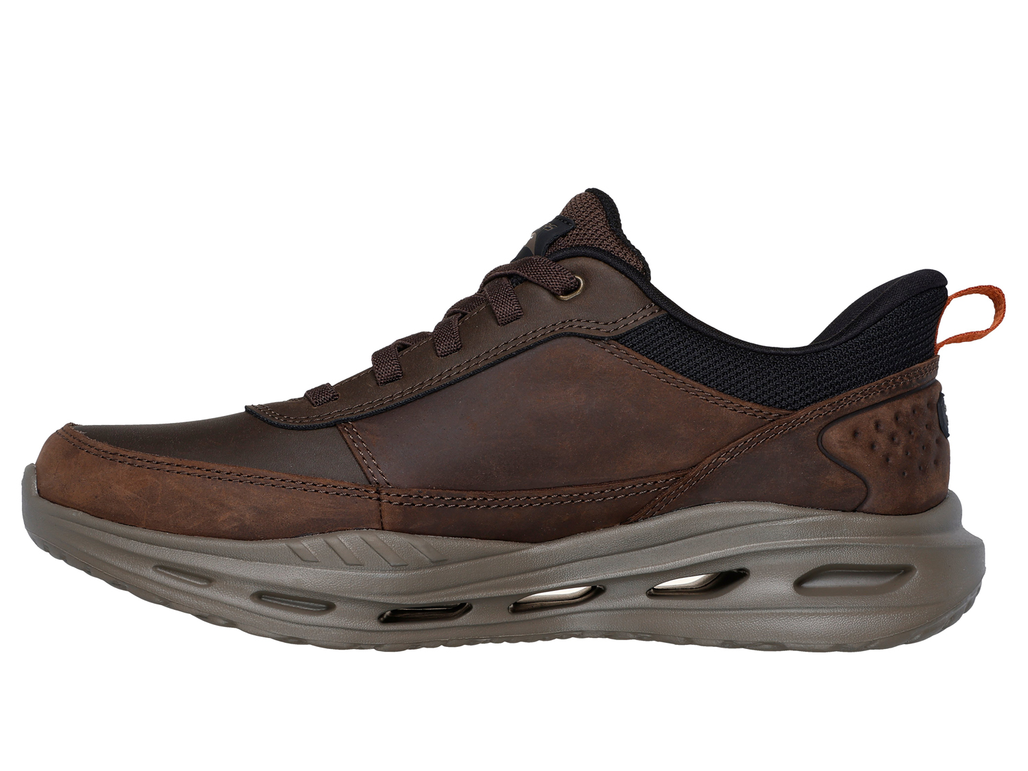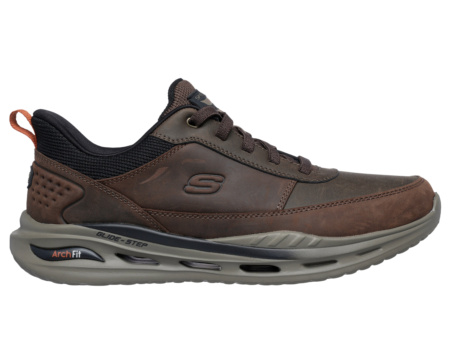 All-day support and easy-wear convenience combine in Skechers Hands Free Slip-ins® Relaxed Fit®: Arch Fit® Orvan - Kincade. Designed with our Exclusive Heel Pillow, this sporty design features an engineered knit and vegan leather upper with a stretch laces, a removable Arch Fit® insole, and a Glide-Step® midsole.
